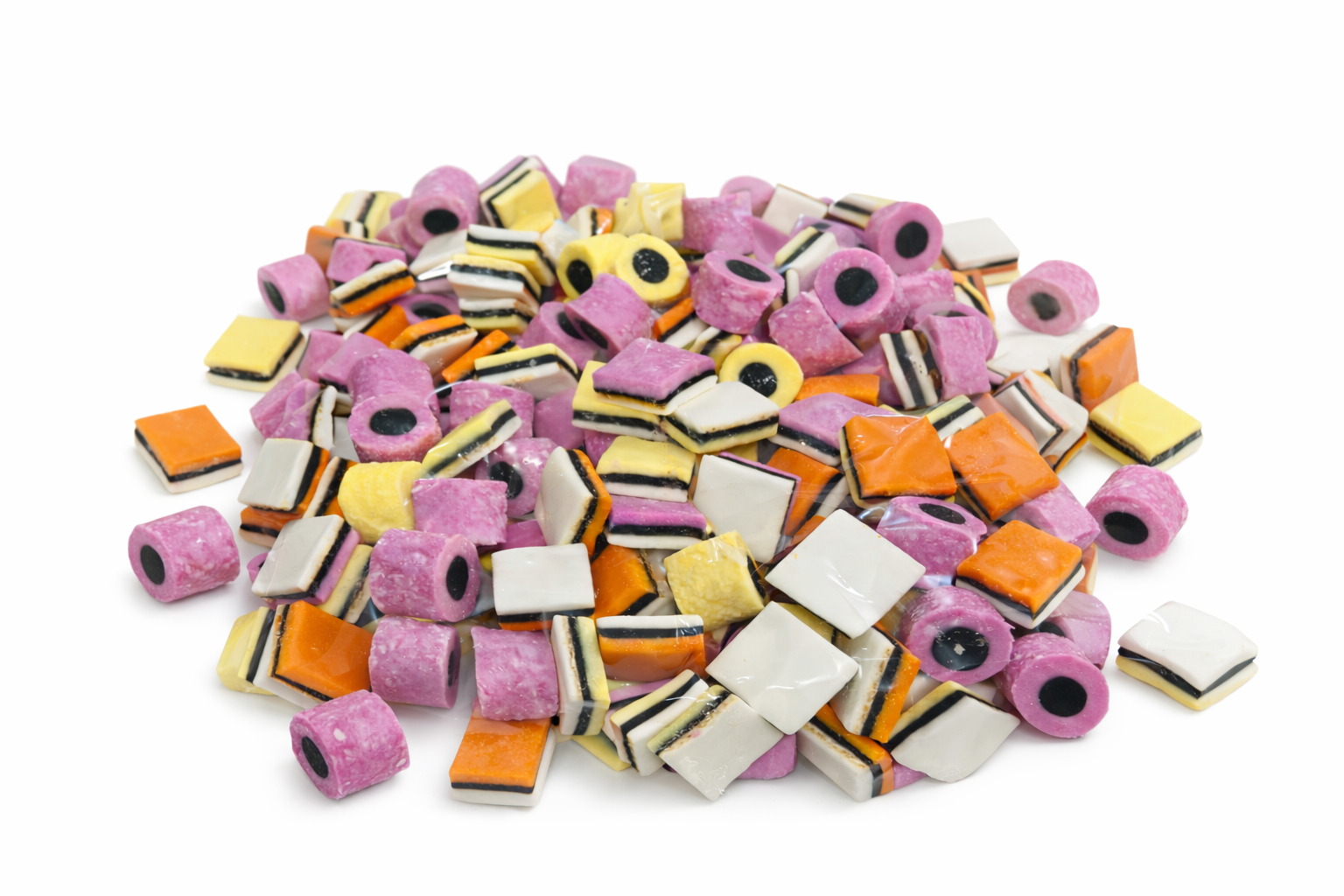 Geniet van een heerlijke mix van zachte Engelse drop in vrolijke kleuren en verschillende vormen. Met roze droprolletjes en gelaagde blokjes biedt deze klassieker de perfecte balans tussen zoet en drop.