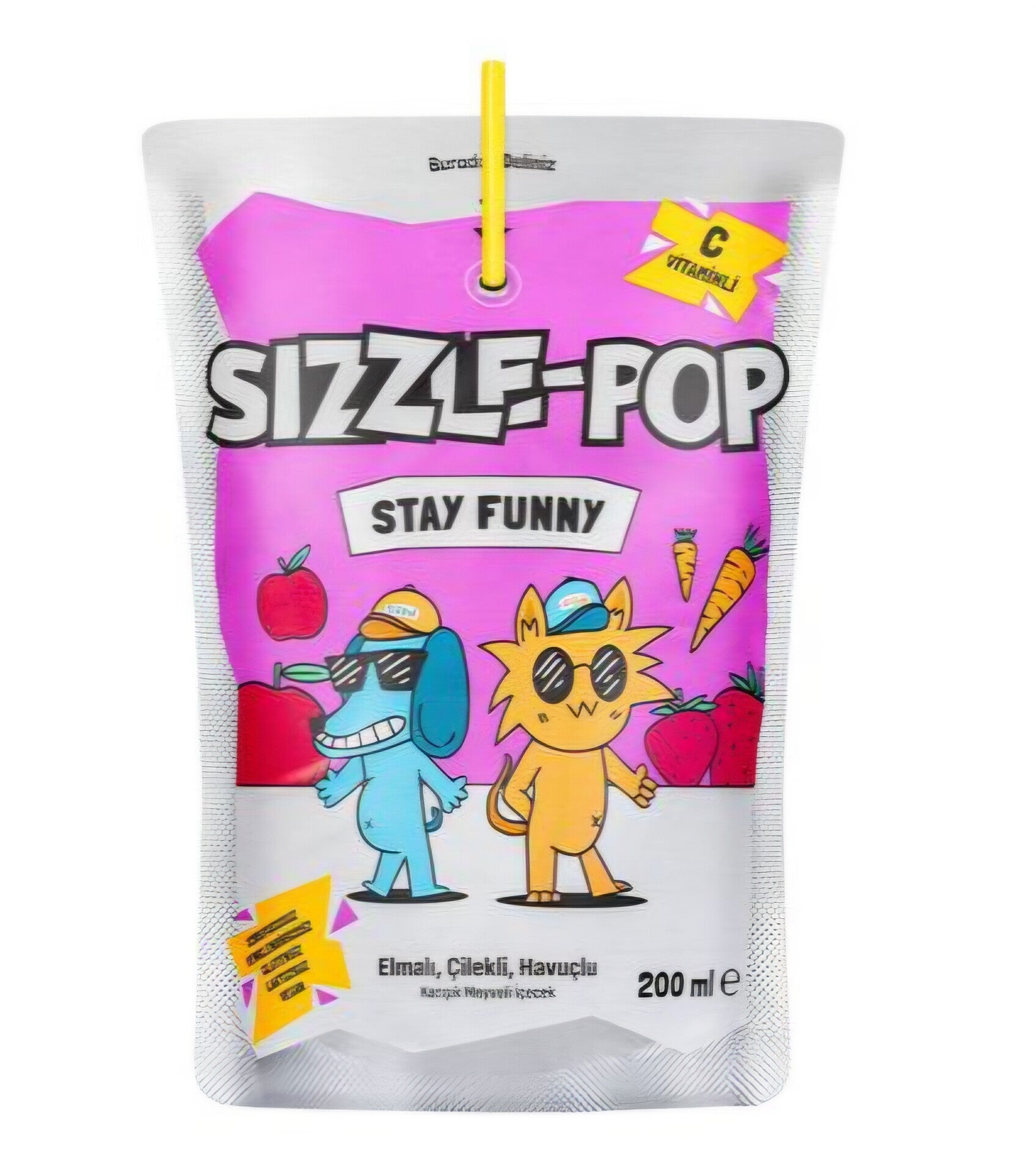 Sizzle-Pop Stay Funny is een speelse en fruitige mix van appel, aardbei en wortel in een handige 200 ml knijpverpakking met rietje. Een verfrissend drankje boordevol smaak en met vitamine C. Zonder toegevoegde suikers, glutenvrij, lactosevrij en vegan – ideaal voor onderweg, school of een dagje uit!